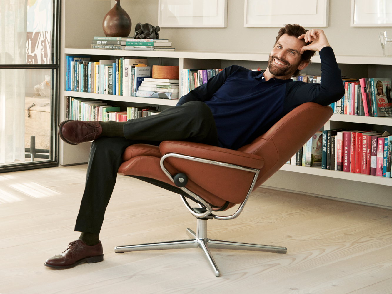 Dank seiner automatischen Anpassungsfähigkeit an Ihre Bewegungen erhalten Sie stets die optimale Unterstützung für ein entspanntes Erlebnis. Das sanfte Schaukeln des Stressless Rome steigert den Komfort und hilft Ihnen, das richtige Gleichgewicht zu finden. Das BalanceAdapt™-System sorgt dafür, dass sich der Sitzwinkel automatisch an die kleinste Bewegung Ihres Körpers anpasst, für eine kontinuierliche Entlastung und Unterstützung. Lehnen Sie sich zurück und spüren Sie, wie sich der Sessel harmonisch Ihren Bewegungen anpasst, während das einzigartige Plus™-System Ihnen optimalen Komfort und eine ideale Stützfunktion für Nacken und Lendenwirbelsäule bietet, egal ob Sie sitzen oder liegen. Das moderne und klare Cross-Untergestell des Stressless Rome verfügt über eine 360°-Drehung. Die abgerundeten Profile der Armlehnen und des Gestells bilden eine elegante Einheit. Wählen Sie zwischen einem Standardgestell oder einem hohen Gestell (+4cm Sitzhöhe und Gesamthöhe) für Ihre individuellen Bedürfnisse.